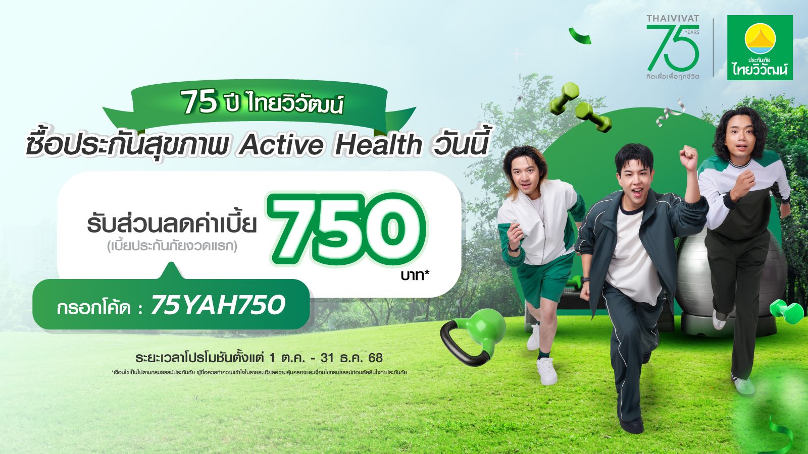 สำหรับลูกค้าใหม่ที่ชำระเบี้ยกรมธรรม์ประกันสุขภาพ Active Health แผนที่เข้าร่วมรายการ ระหว่างวันที่ 1 ต.ค. - 31 ธ.ต. 68