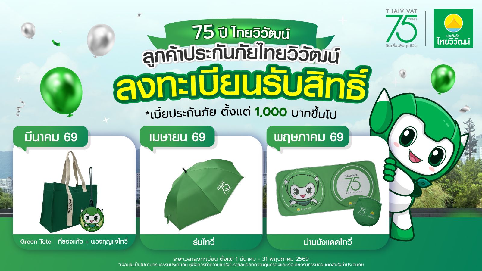 ติดตามกิจกรรมและโปรโมชันพิเศษ ฉลอง 75ปี ประกันภัยไทยวิวฒน์ คลิกเลย!