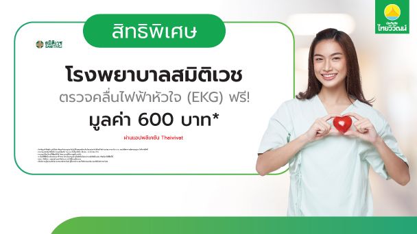 ○ สิทธิพิเศษ ตรวจคลื่นไฟฟ้าหัวใจ (EKG) ฟรีเฉพาะครั้งแรก มูลค่า 600 บาท (รวมค่าแพทย์ และค่าบริการโรงพยาบาลแล้ว)